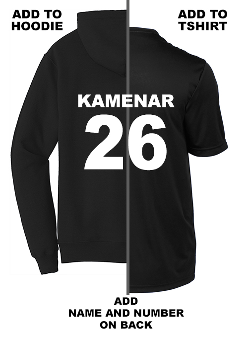 Price Includes Left chest Logo with name under the logo and number on the next line, Plus Full Back Logo